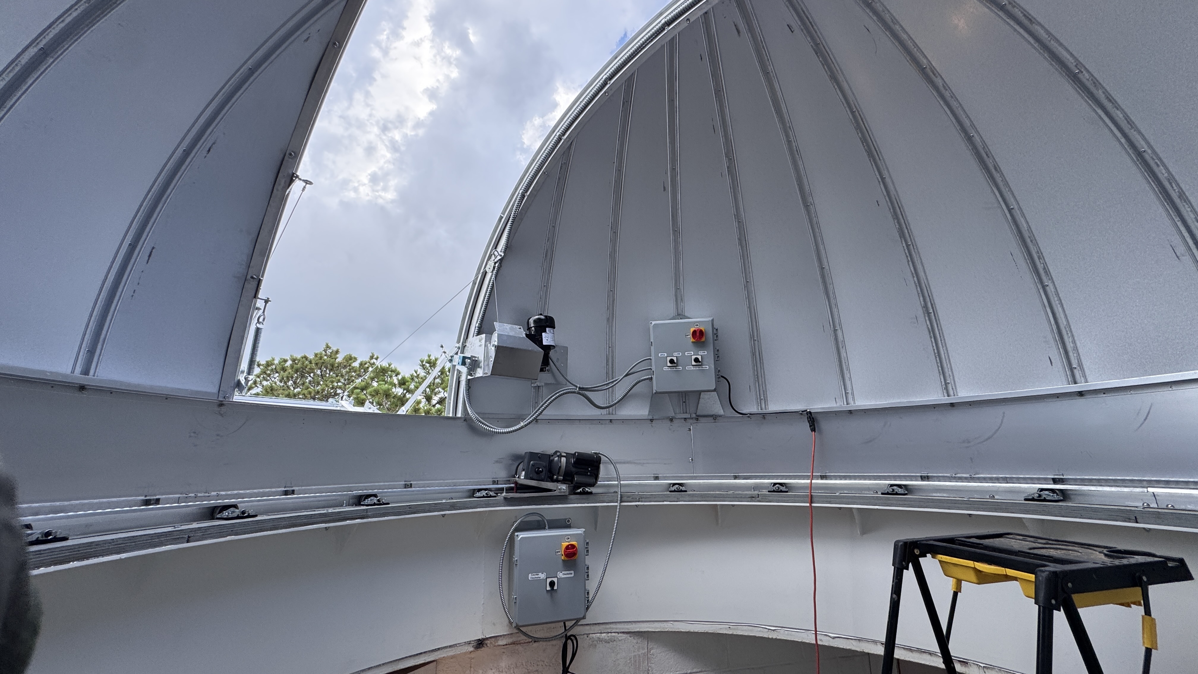 The doors of the original dome had become very difficult to open. Perched on top of a ladder, wiggling and shoving would slowly move the doors open or closed. Additionally, a careless finger could be pinched when spinning the dome. |